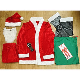 Bộ quần áo ông già noel chất liệu Nhung và vải nỉ freesize cho người dưới 90kg tuỳ theo chiều cao Bộ gồm: - quần - áo - mũ - râu - đai - bộ
