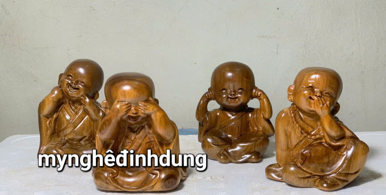 Bộ tượng tứ không gỗ bách xanh - không nhìn - không nói - không nghe -không làm điều xấu