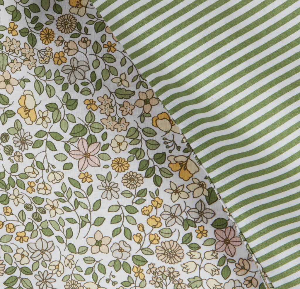 Bộ sản phẩm thu hút với thiết kế xinh xắn, tươi tắn, tạo điểm nhấn từ họa tiết hoa lá nhỏ nhắn, phối màu xinh xắn được phân bổ trải đều khắp bề mặt vải. Bỏ chăn gồm 2 mặt: 1 mặt hoa tiết hoa lá xinh xắn, 1 mặt sọc xanh trắng tươi tắn. Đây sẽ là sản phẩm mang đến cảm giác tươi mới, nhã nhặn cho không gian phòng ngủ.