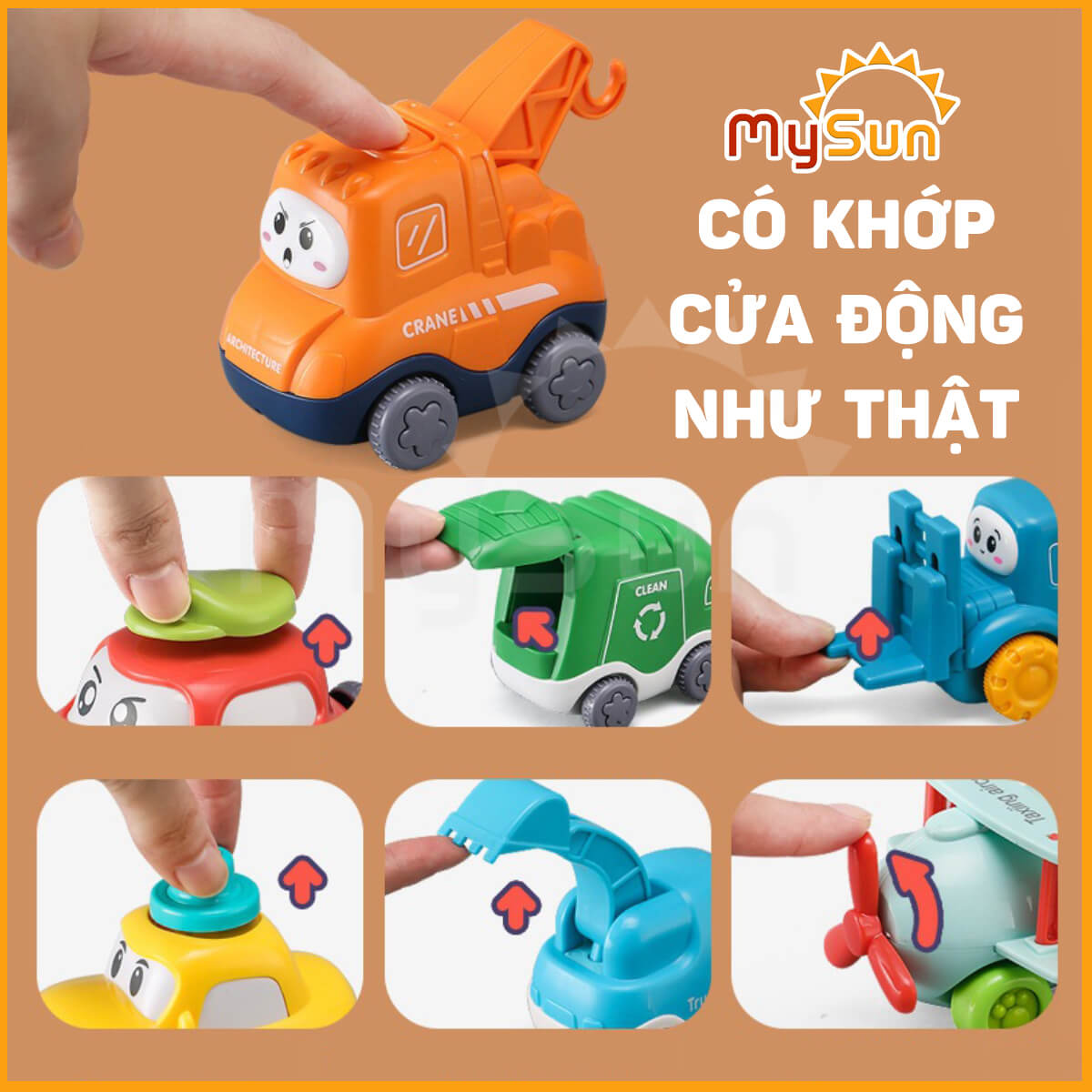 - Các mẫu xe công trình, chở rác, taxi đều có 1 khớp đóng mở, xoay như thật. THÔNG SỐ BỘ XE OTO ĐỒ CHƠI TRẺ EM CỠ NHỎ MINI