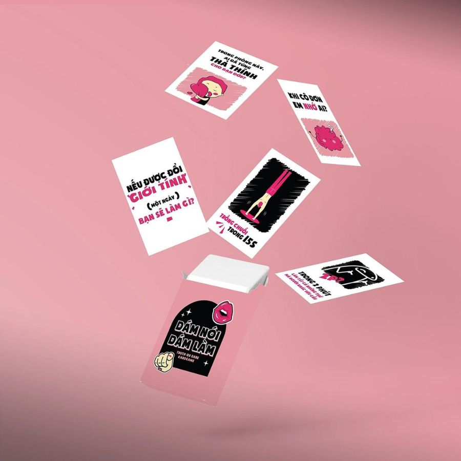 Mua tại TiktokGiới thiệu Boardgame Dám Nói Dám Làm - Truth Or Dare Game - BGV Những buổi ăn nhậu đầy thức uống ngon và mồi thơm nghe thì cũng thích đấy, nhưng bạn đã thử vừa chill vừa chơi Truth Or Dare game chưa? Hứa hẹn là vui banh nóc luôn! Tạm biệt những buổi gặp mặt tẻ nhạt và nhàm chán, cuộc vui của bạn sẽ thêm phần thú vị với hàng loạt thẻ bài siêu bựa sẽ giúp bạn đẩy nhanh quá trình “gãy” của những đứa khác trên bà Lưu ý: Uống có trách nhiệm - đã uống rượu bia thì không lái xe. Gồm 72 thẻ bài - Chia thẻ bài thành 2 phần: TRUTH và DARE Lần lượt từng người chơi sẽ phải chọn 1 trong 2 phần, rút 1 thẻ bài và đọc to nội dung cho mọi người cùng nghe rồi thực hiện nó. Thực hiện xong sẽ tới lượt người tiếp theo chiều kim đồng hồ.