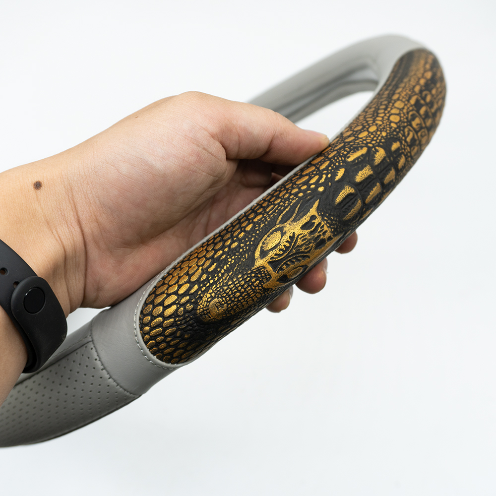 ✨Bọc vô lăng ô tô da bò thật - dập vân cá sấu nổi bắt mắt - AZ-140 - Màu ghi