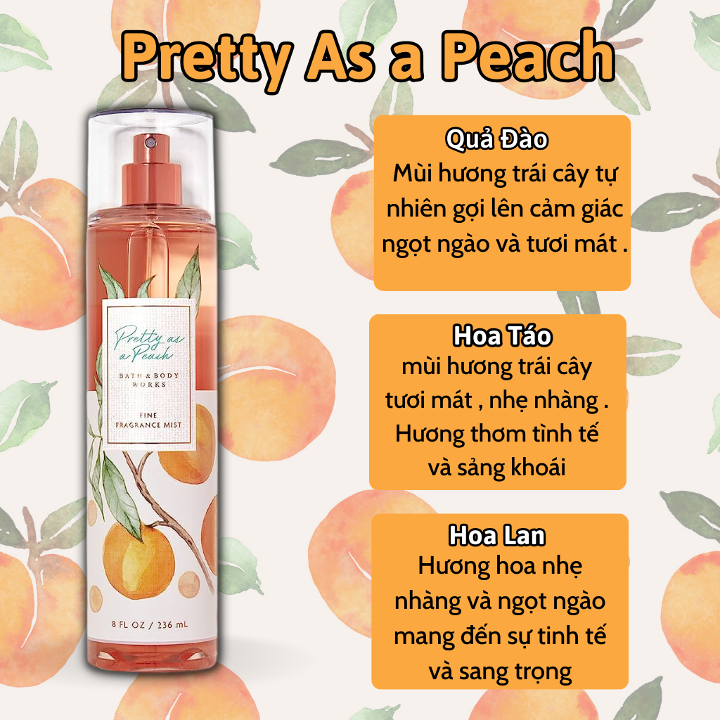 ✨Body Mist Bath And Body Works Nam Nữ Chính Hãng Pretty As A Peach, Xịt Thơm Body Toàn Thân Hương Nước Hoa 236ml