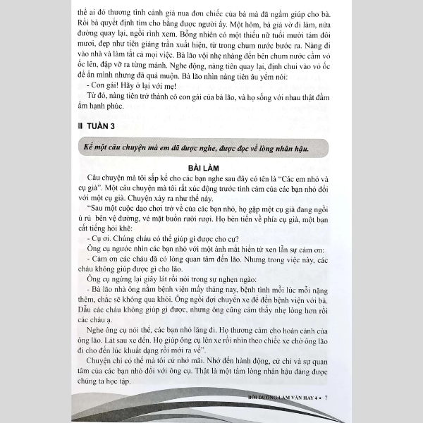 Cuốn sách gồm hơn 200 đoạn và bài văn có nội dung liên quan đến các chủ đề trong phân môn Tập làm văn mà học sinh lớp Bốn được học trên lớp. Khi chuẩn bị bài ở nhà, các em nên đọc trước vài lần đoạn văn, bài văn phù hợp, ghi nhớ cách tác giả diễn đạt. Muốn viết tốt thì phải đọc nhiều. Lúc làm bài Tập làm văn, tự nhiên các em sẽ thấy mình viết nhanh, viết hay và không bị lạc đề. Nếu được người lớn am hiểu môn Văn giúp đỡ, các em có thể thấy hứng thú với các đề bài Tập làm văn.