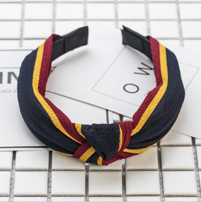 ✨Bờm cài tóc turban nữ kẻ phối kẻ xanh đậm vàng bản to BN21C