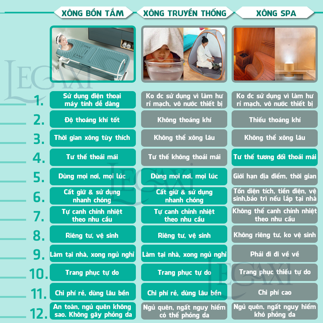 - Không cần phải ra spa đắt đỏ, bạn vẫn có thể trải nghiệm xông hơi thoải mái, dễ chịu, riêng tư và vệ sinh