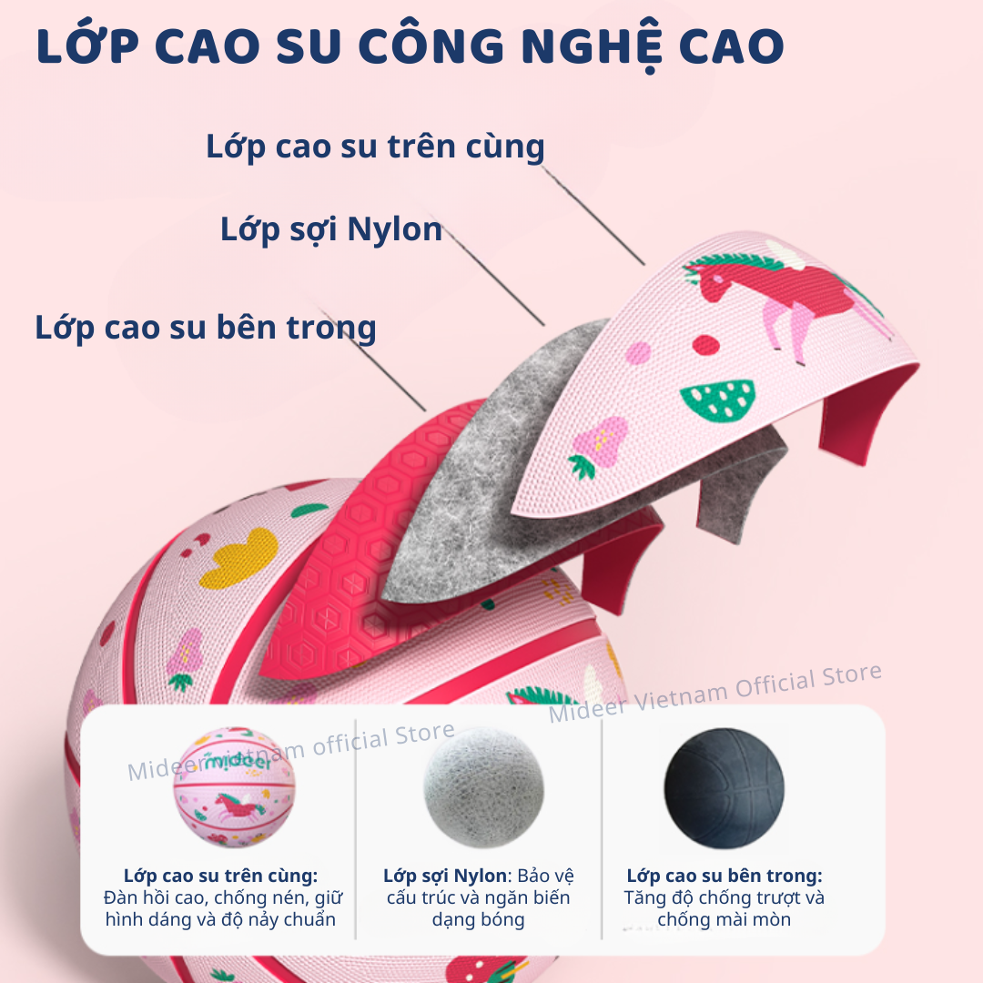 - Lớp cao su trên cùng: Độ đàn hồi cao và chống nén, giúp bóng luôn giữ được hình dáng và độ nảy chuẩn.