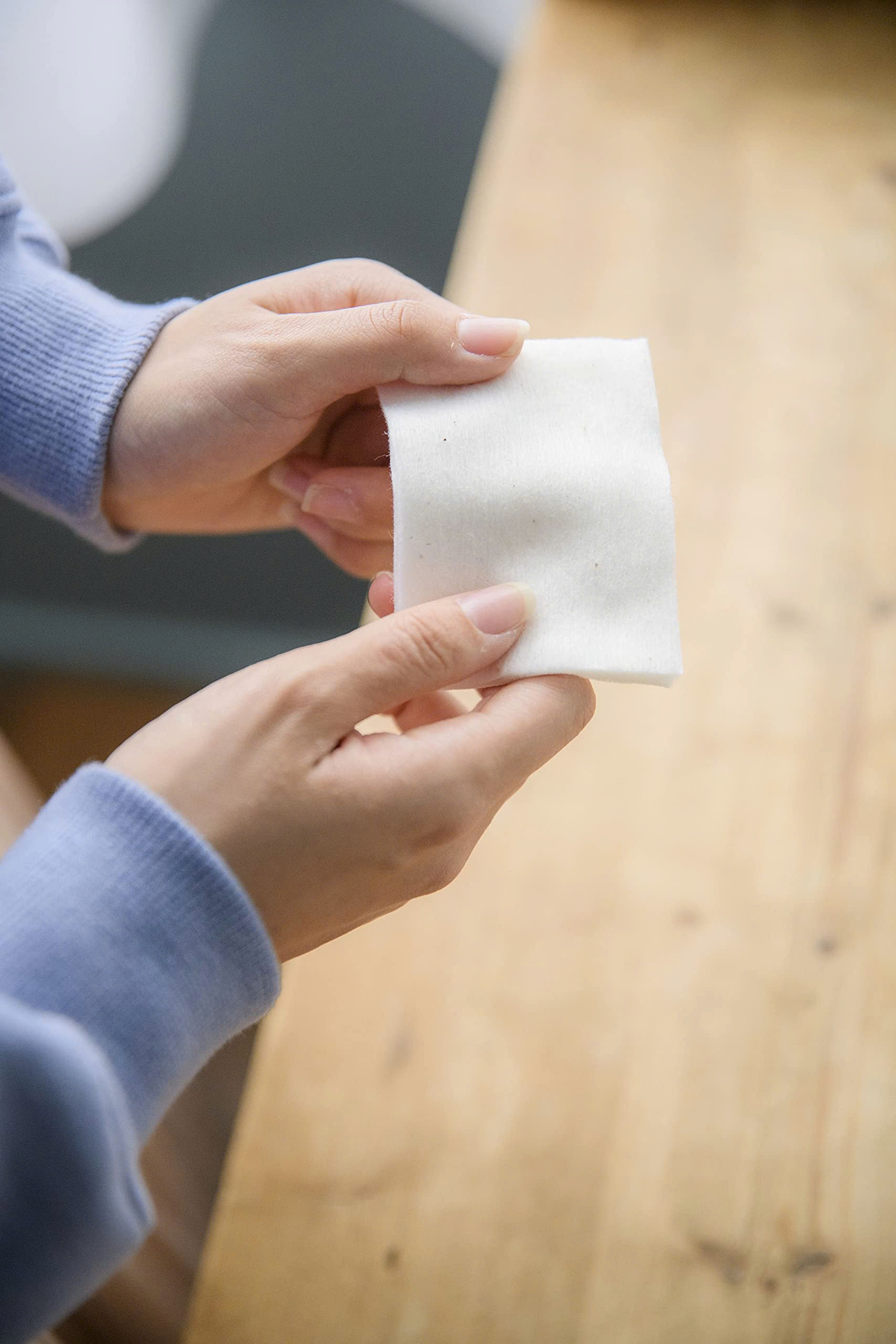 Đặc Điểm Nổi Bật: Sản phẩm có thiết kế 2 mặt, với công dụng :Một mặt bằng vải không dệt Rayon phẳng trơn mịn dùng để các sản phẩm dưỡng da, trang điểm.Một mặt bằng