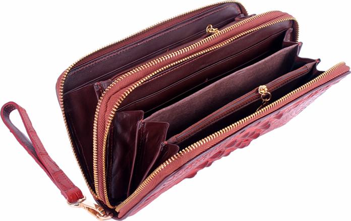 Ví/Bóp nữ da bò Huy Hoàng vân cá sấu lớn 3 gấp màu nâu đỏ 3169