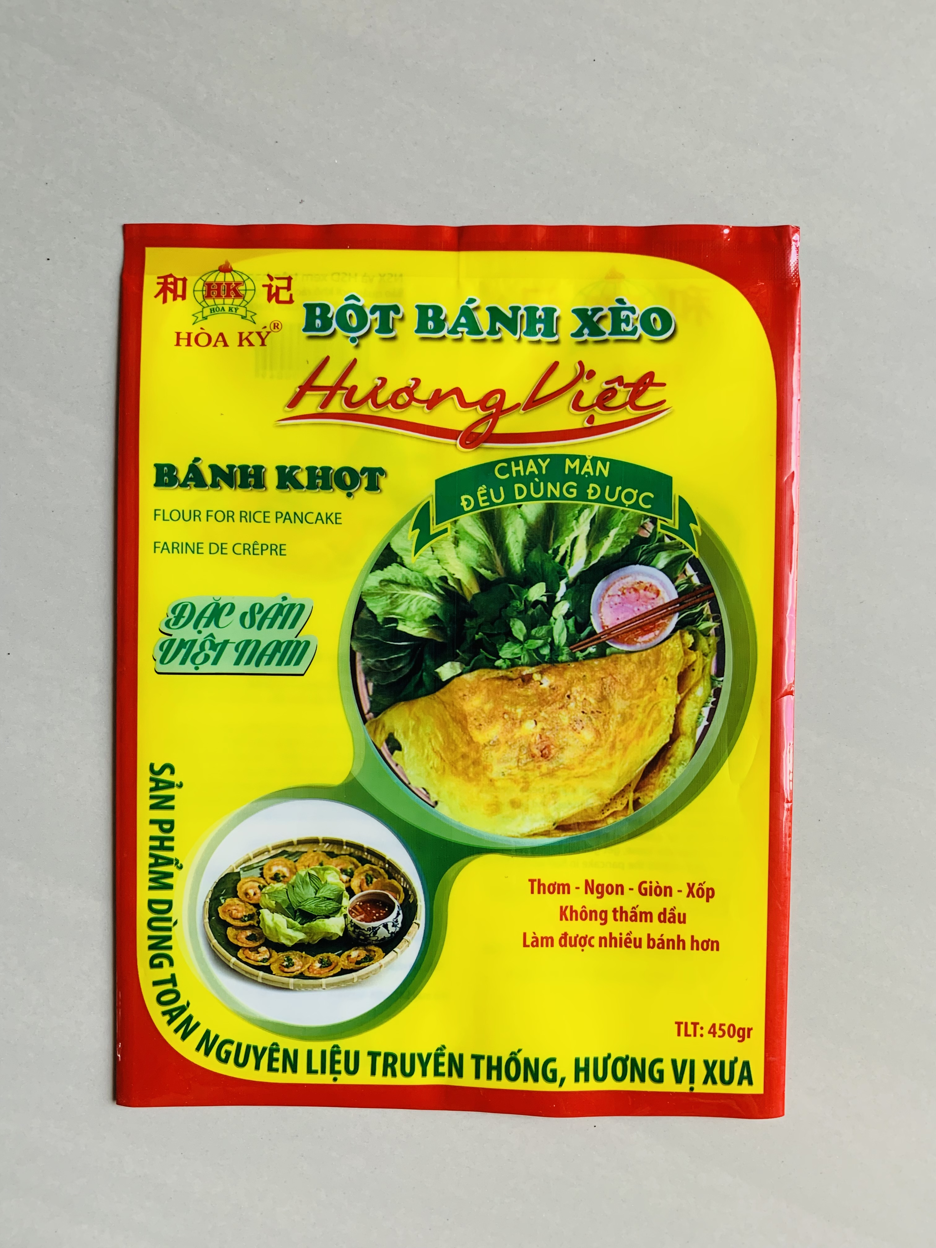 Hướng dẫn sử dụng: Bước 1 : Cho khoảng 900gr nước (hay nước cốt dừa) vào bột bánh xèo khuấy cho đều, có thể nêm gia vị theo sở thích. Bước 2 : Đun nóng chảo, cho