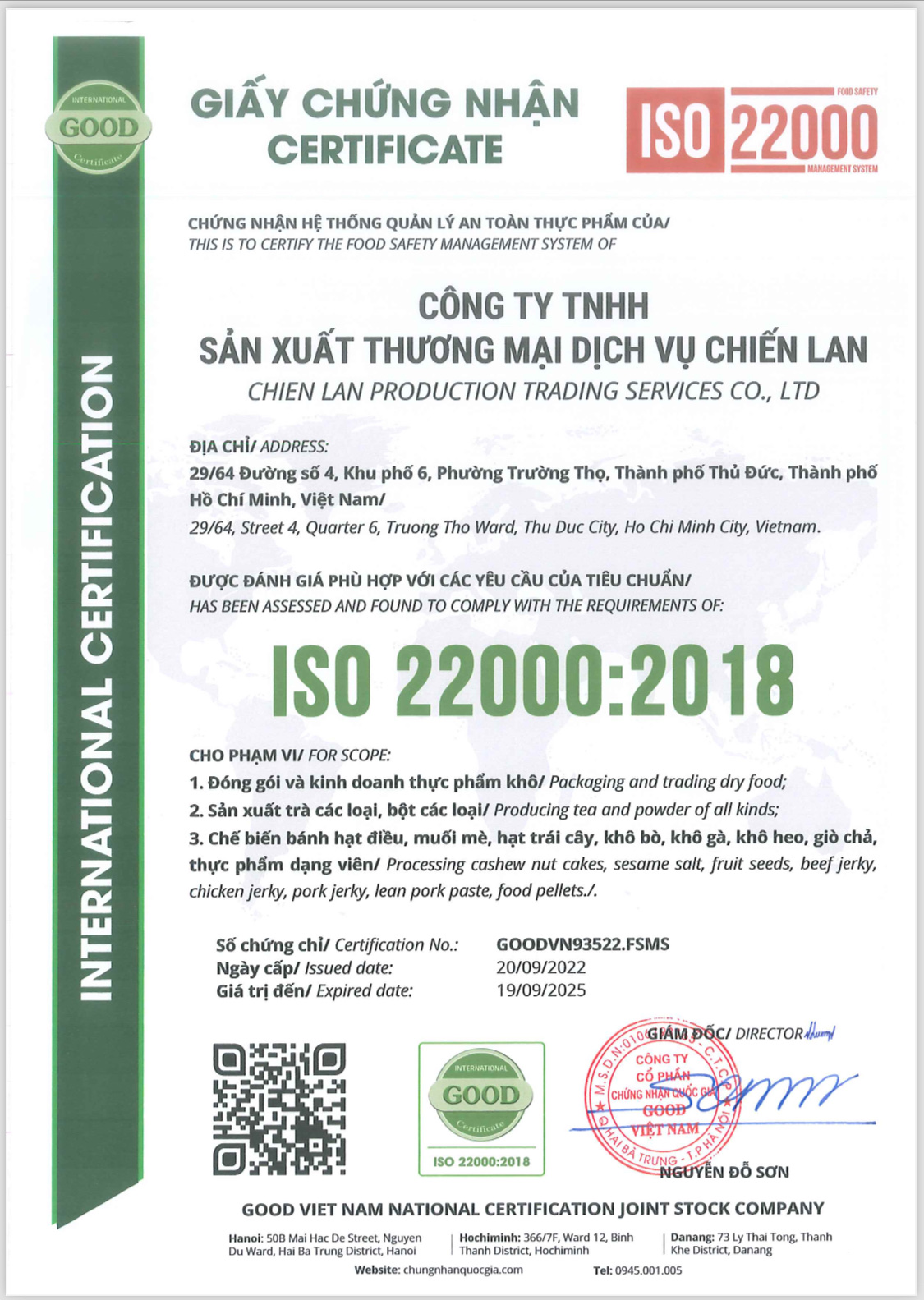 - Tên sản phẩm: Cacao nguyên chất. - Pha chế: Pha truyền thống, uống với đường hay sữa (nóng, đá) tùy thích. - Số công bố: 23/TN/2019. - Quản lý sản xuất theo tiêu chuẩn HACCP. -