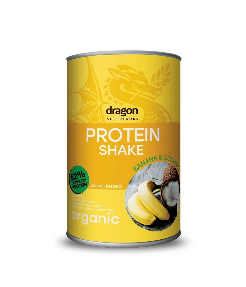 - Bột Protein shake chuối và dừa hữu cơ 450g - Dragon Superfoods Bột protein shake chuối và dừa Dragon Superfoods là thức uống pha sẵn thơm ngon với 52% hàm lượng đạm thực vật. Cơ thể có thể hấp thụ dễ dễ dàng các dưỡng chất để bắt đầu một ngày mới trước và sau khi tập thể dục. Đó là sự kết hợp của các thành phần hữu cơ - một giải pháp vô cùng nhanh chóng cho một ngày bận rộn. Protein thực vật làm phong phú thực đơn với các axit amin, và hương vị thơm ngon của chuối đồng thời kết hợp hoàn hảo với dừa béo ngậy.