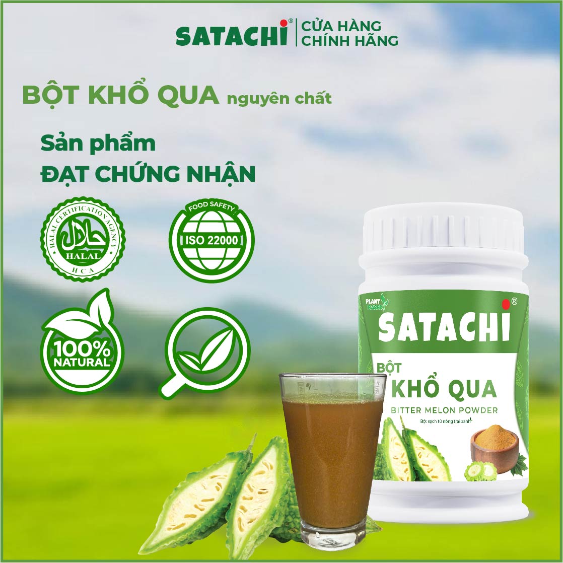 - Không chất tạo bọt SATACHI sử dụng hệ thống máy sấy công nghiệp hiện đại, giữ trọn các dưỡng chất tối ưu, hương vị, … có trong Bột Khổ Qua. Bột Khổ Qua nguyên chất SATACHI: