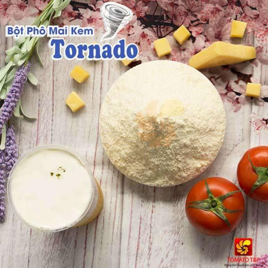 Bột phô mai kem Tornado ( Tornado cheese cream powder) được sản xuất từ nguồn nguyên liệu phô mai ở Châu Âu, đảm bảo vệ sinh an toàn thực phẩm. Bột có dạng mịn, màu