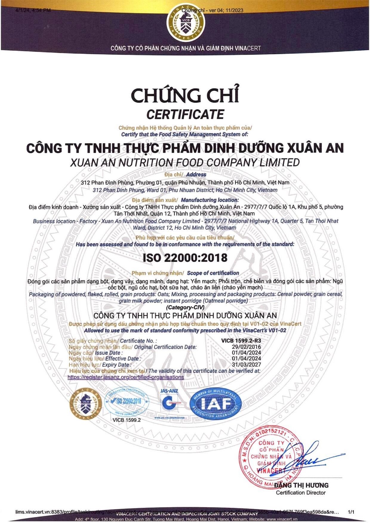 - Không sử dụng đối với người có khả năng mẫn cảm hoặc dị ứng với thành phần trong sản phẩm. Sản phẩm của: Công ty TNHH Thực Phẩm Dinh Dưỡng Xuân An