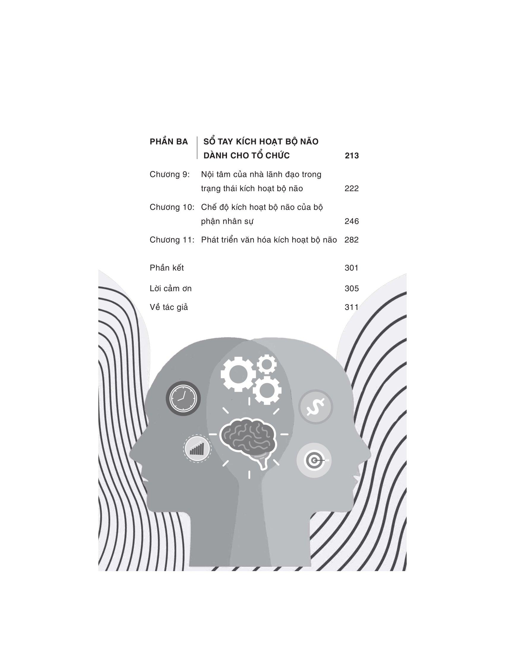 • Phần II: Những cách thức đã được chứng minh để giữ cho bộ não của bạn tập trung và hướng tới mục tiêu đã định. Bạn sẽ học cách tạo lập lịch trình rèn luyện tinh thần của riêng m.ình để luyện tập trí não, sử dụng các kỹ thuật và thói quen hiệu quả nhằm vượt qua những trở ngại trong công việc.