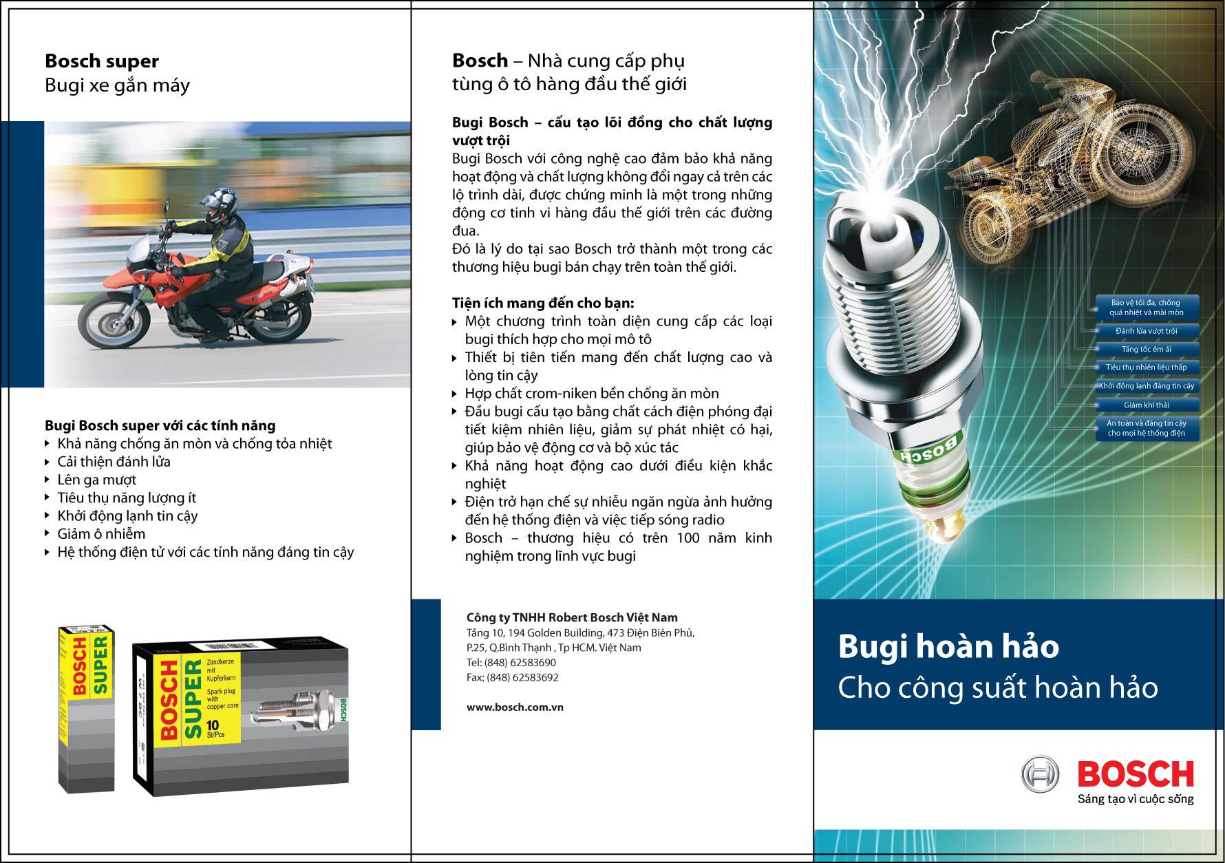 Robert Bosch là nhà phát minh ra Bugi và kinh nghiệm hơn 100 năm sản xuất Bugi với hơn 20 tỷ chiếc được sản xuất bởi Bosch - Công nghệ Surface Gap với điện cực