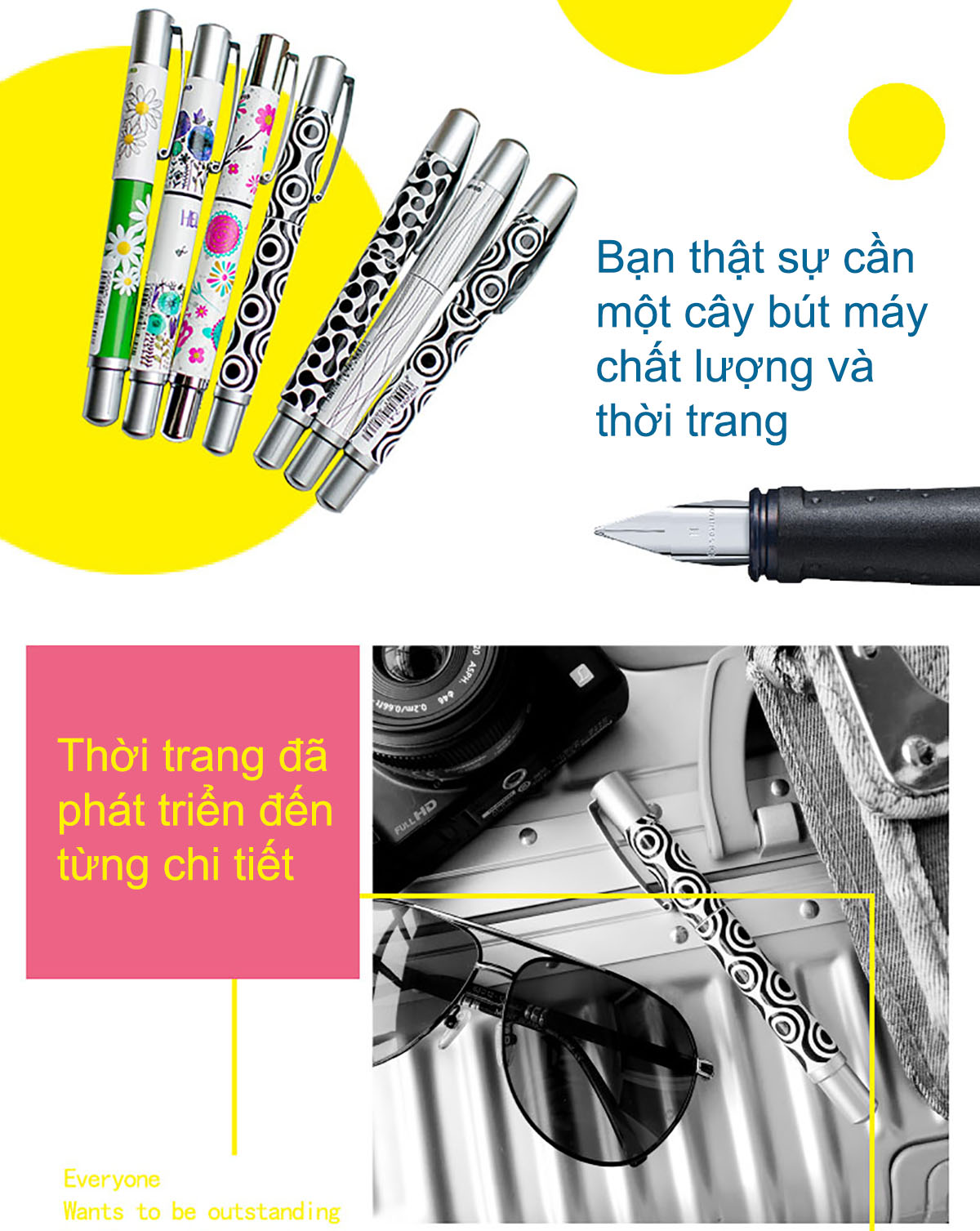 - Màu sắc :Vàng - Đặc điểm : +Thiết kế bút nhẹ, vừa tay cầm + Công nghệ mực Free Ink System giúp mực chảy đều, không bị lem mực, tạo nét viết êm trơn