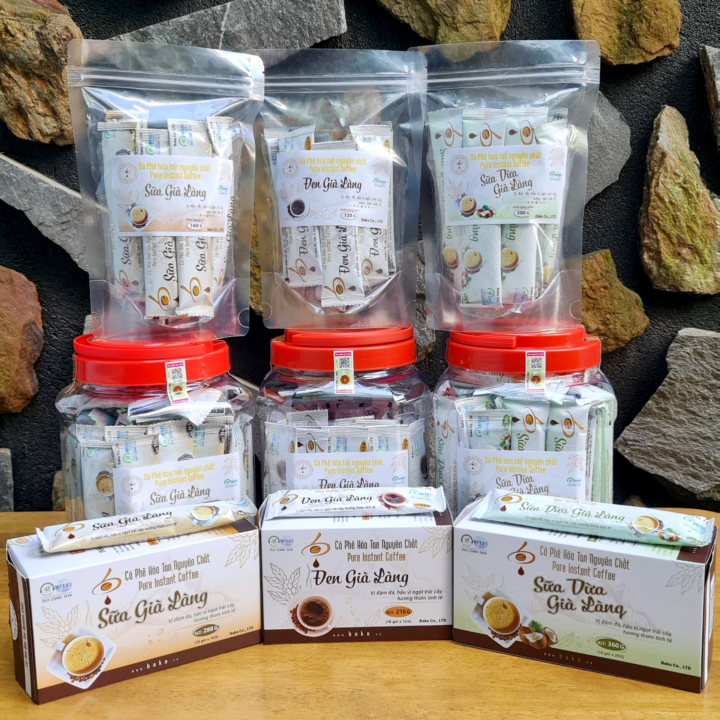 Cà Phê Hòa Tan Nguyên Chất SỮA GIÀ LÀNG - Bì Zip - Sản phẩm làm từ cà phê nguyên chất, không sử dụng chất độn, không sử dụng đường Maltodextrin. - Nguyên liệu được