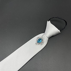 Cà vạt 6cm màu xám trắng thắt sẵn đính đá xanh sang trọngCà vạt 6cm màu xám trắng thắt sẵn đính đá xanh sang trọng