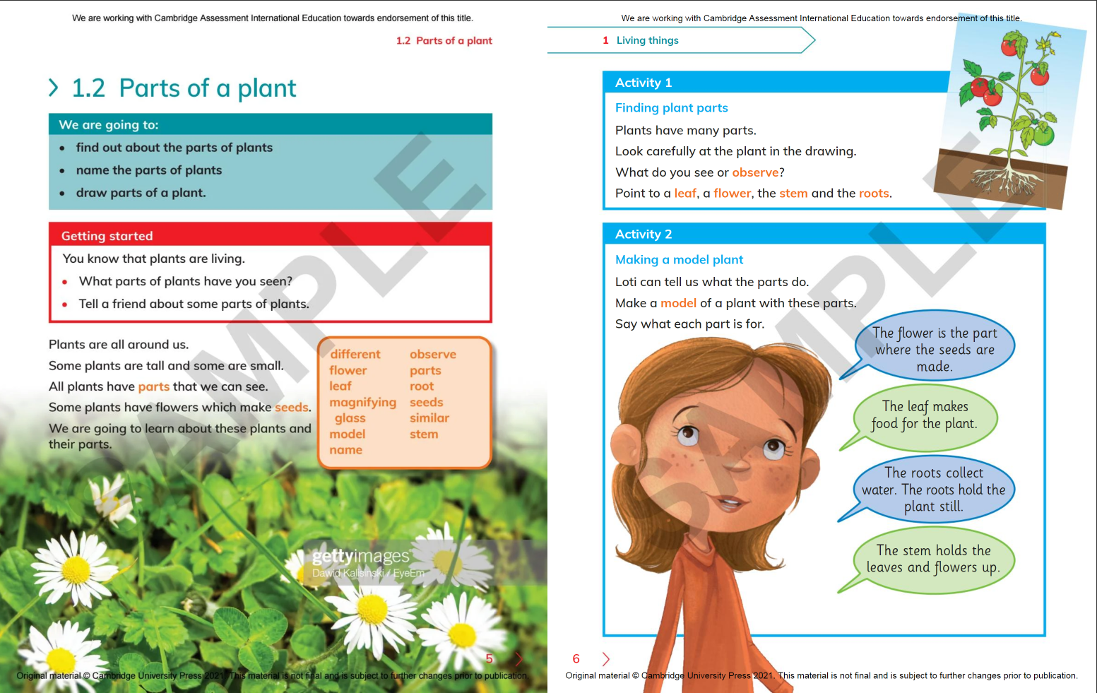 Discover our new resources for the Cambridge International Primary and Lower Secondary Curriculum Frameworks From experiments to discover what makes plants grow, to making musical instruments to investigate sound waves, Cambridge Primary Science gets your learners thinking like scientists! Packed with opportunities to plan experiments, make predictions and gather results, the series helps your learners think and work scientifically. Each unit ends with a project, like making a model garden, that helps students bring together what they have learnt, and understand how the topics relate to the real world. With vocabulary boxes, clear diagrams and supporting illustrations, the course makes science accessible for learners with English as a second language.