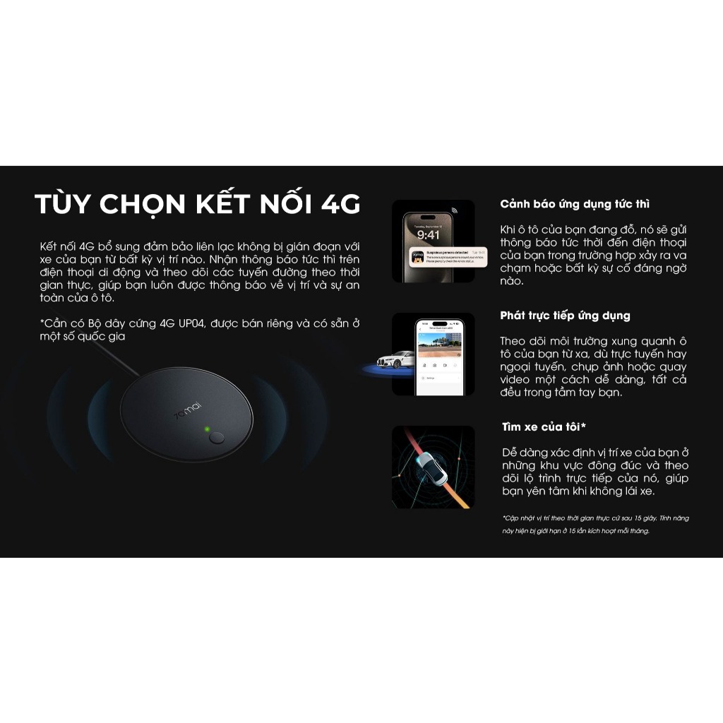 70mai Dash Cam A810 4K Siêu Phẩm Ghi Hình 4K HDR – 4G Giám Sát Từ Xa Sử dụng cảm biến So,ny Starvis 2 IMX678 mới nhất và thuật toán HDR cho chất lượng video 4K
