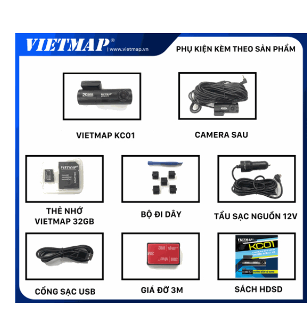 VIETMAP KC01 với camera trước độ phân giải SUPER HD 2K kết hợp cùng camera sau Full HD 1080p ghi lại chi tiết toàn bộ hành trình trước & sau xe cùng với tốc độ.