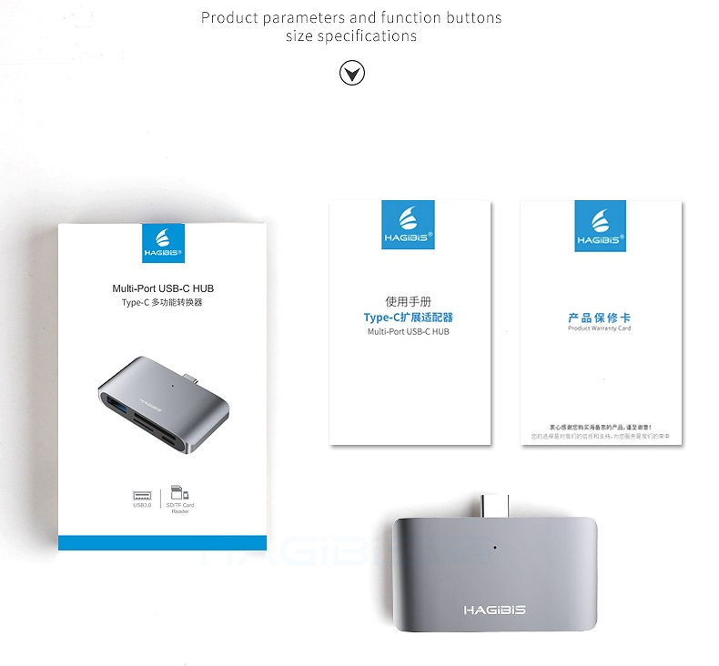 ✨Cáp đa năng Hagibis Usb Type C To SD/TF Card/USB - Hàng chính hãng