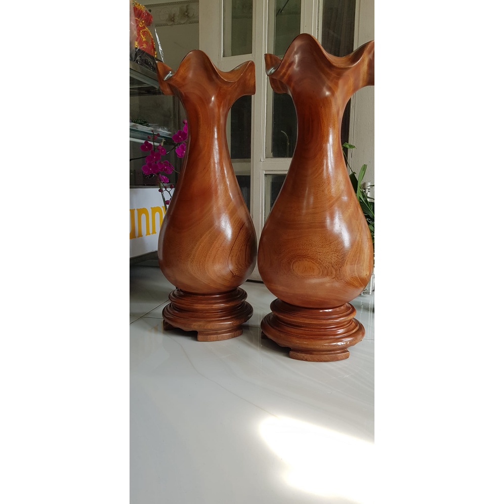 Cặp Lộc Bình Gỗ Gõ Đỏ cao 68cm x đk 25cm vân tự nhiên đẹp Anh Chị trưng phòng khách nhà, công ty, 2 bên bàn thờ Thần Tài , bất kỳ nơi nào trang