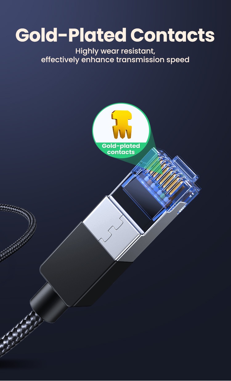 Cáp mạng Cat8 Ugreen 30800 với dây bện nylon, cáp ethernet LAN cat8 này được bọc bằng vật liệu bện chắc chắn và bền, dễ mang theo với độ bền và tính linh hoạt được nâng cao.