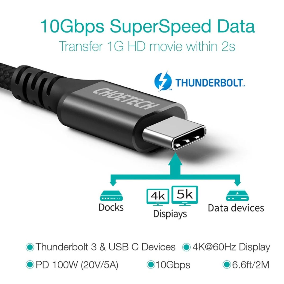 Cáp sạc nhanh 100w Choetech A3010 Type C to Type C Thunderbolt 4 (Hàng chính hãng)