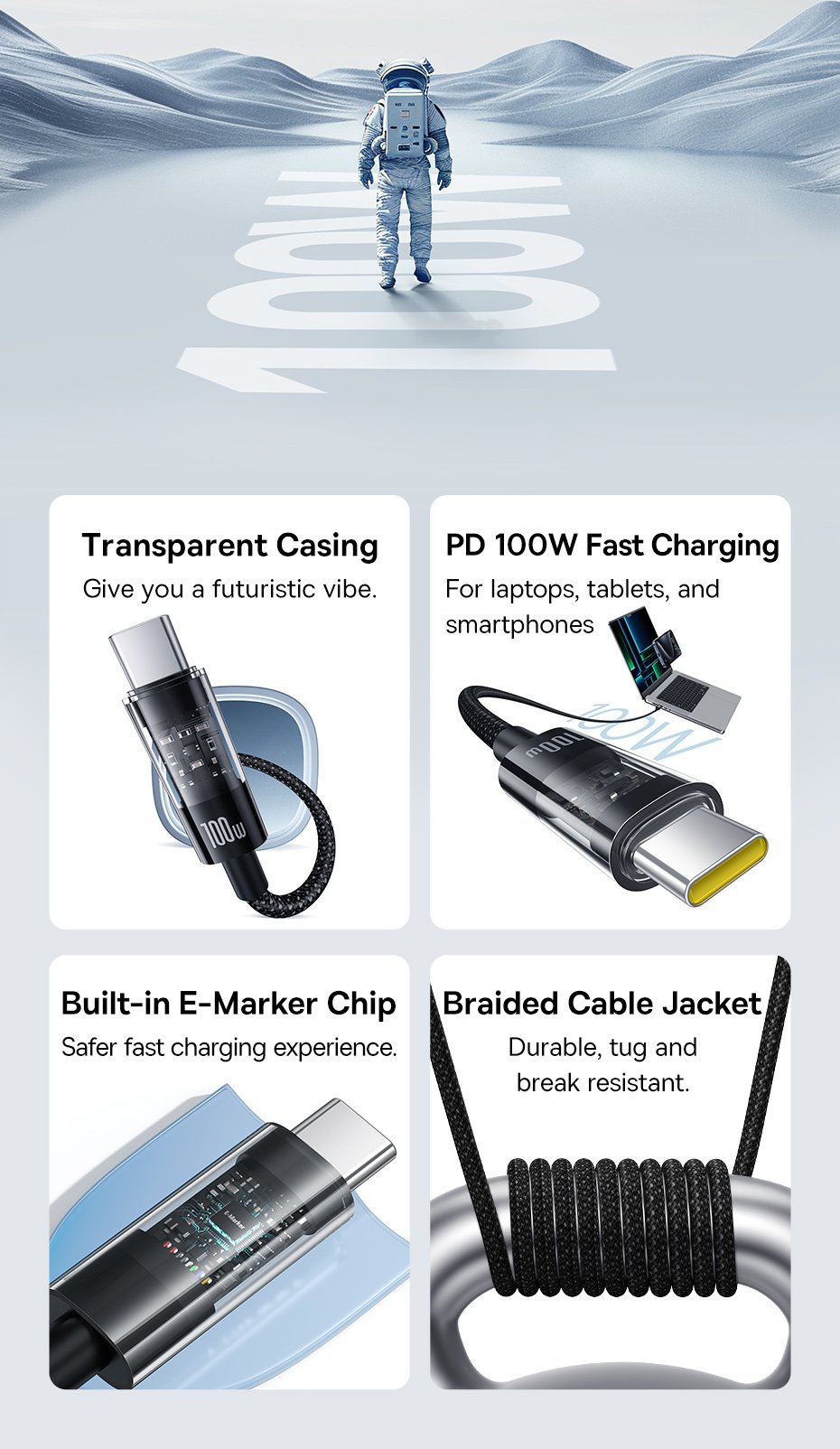 ✨Cáp sạc nhanh Type C to Type C 100W Baseus Gem Fast-Charging Data Cable - Hàng chính hãng