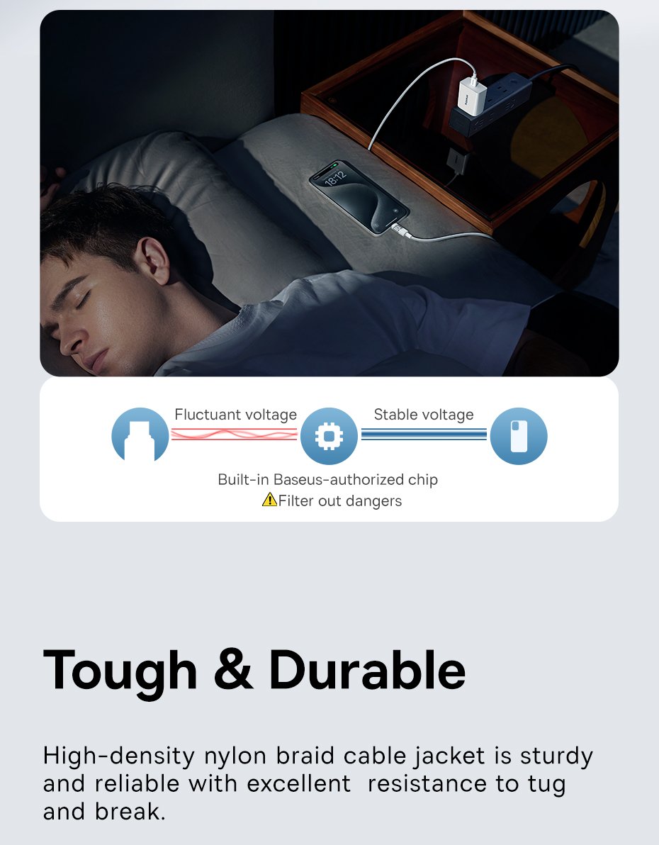 Tính năng Cáp Sạc Nhanh C to C Baseus Dura Series 240W (48V/5A, 480Mbps) Công Suất Sạc Siêu Khủng 240W Đây chính là điểm nhấn ấn tượng nhất của Baseus DURA Series. Với công suất sạc