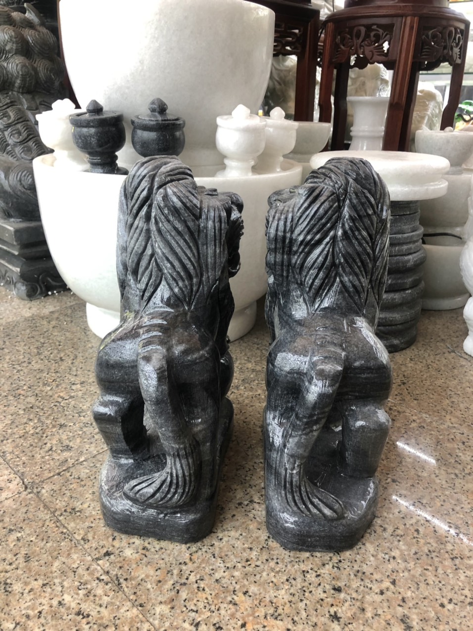 ✨Cặp Sư Tử phong thủy đá cẩm thạch vân đen - Cao 30 cm