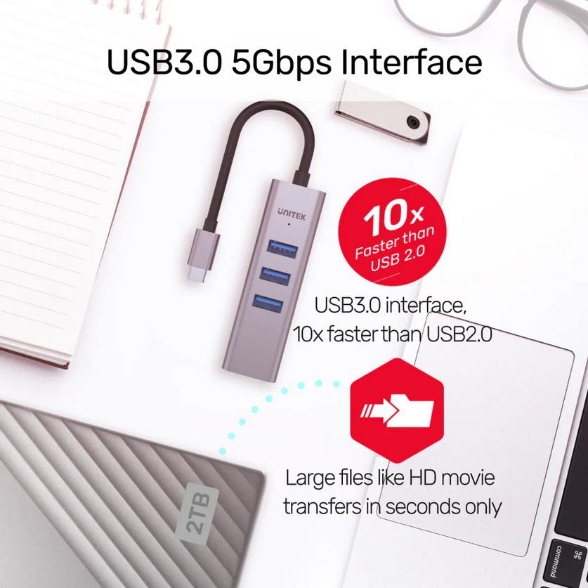 CÁP TYPE-C -> 3 USB 3.0 + LAN UNITEK H1904A