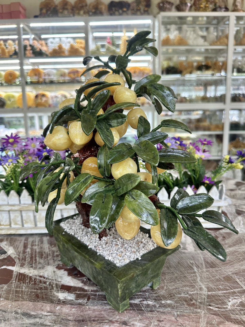Cây Đào Đá Ngọc Hoàng Long Tự Nhiên Vàng Đẹp Size 40cm