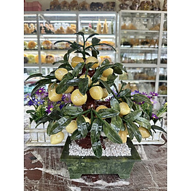 Chất liệu: Quả đào bằng đá thạch anh hồng, lá và chậu cây là đá ngọc Ấn Độ Bao gồm: 28 quả Kích thước: Cao 50 cm x Ngang 34 cm Khối lượng: 6 kg