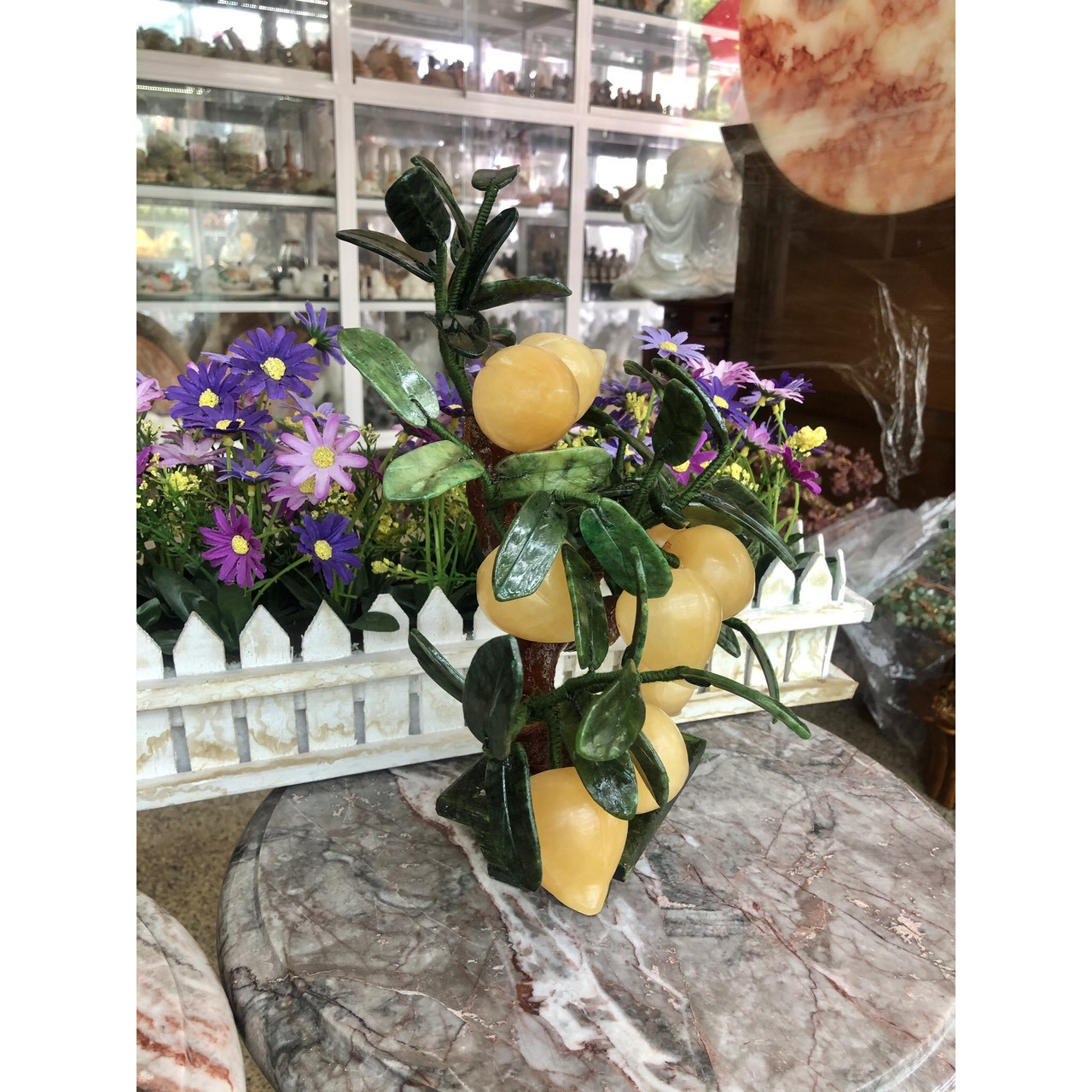Mua tại TiktokKích thước: Cao 30 cm Bao gồm 9 quả Khối lượng: 1,83 kg Cây đào đá ngọc hoàng long tượng trưng cho sự thu hoạch, kết quả hoặc sự đầu tư mang lại lợi lộc lớn. Cây đào trong kinh doanh giúp mang lại nguồn năng lượng tích cực, cát khí giúp việc làm ăn được thuận lợi, hanh thông. Từ xưa, cây đào còn tượng trưng cho sự trường thọ. Cây đào mang ý nghĩa sức khỏe vẹn toàn cho con người, một cuộc sống ít ốm đau, bệnh tật. Vị trí đặt : Trưng bày văn phòng, phòng khách, bàn làm việc, công ty, quầy thu ngân, cửa hàng kinh doanh, quầy lễ tân,…