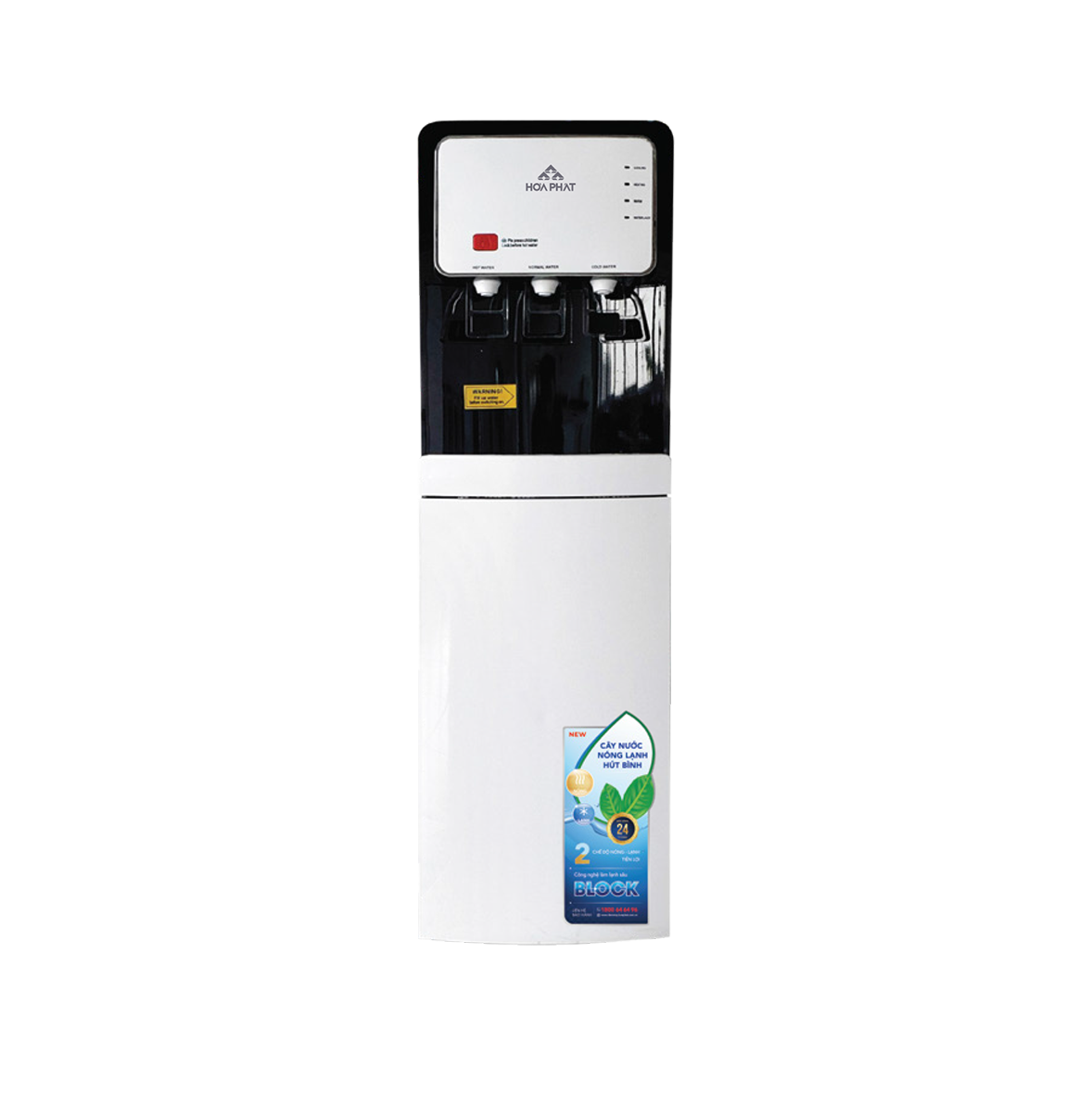 - Bảo hành vượt trội lên tới 24 tháng đối với các linh kiện làm lạnh. Cây nước nóng lạnh hút bình Hòa Phát HWP B2CI có 3 chế độ nước tiện lợi, công suất làm nóng lớn và hiệu suất làm lạnh hiệu quả. Kiếu dáng sang trọng, chắc chắn. 3 chế độ nước tiện lợi: Nóng, lạnh và nguội