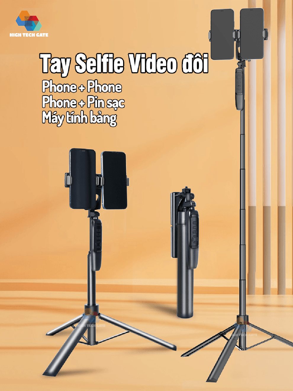 Đầu kẹp điện thoại gắn tripod, cây livestream, gậy tự sướng