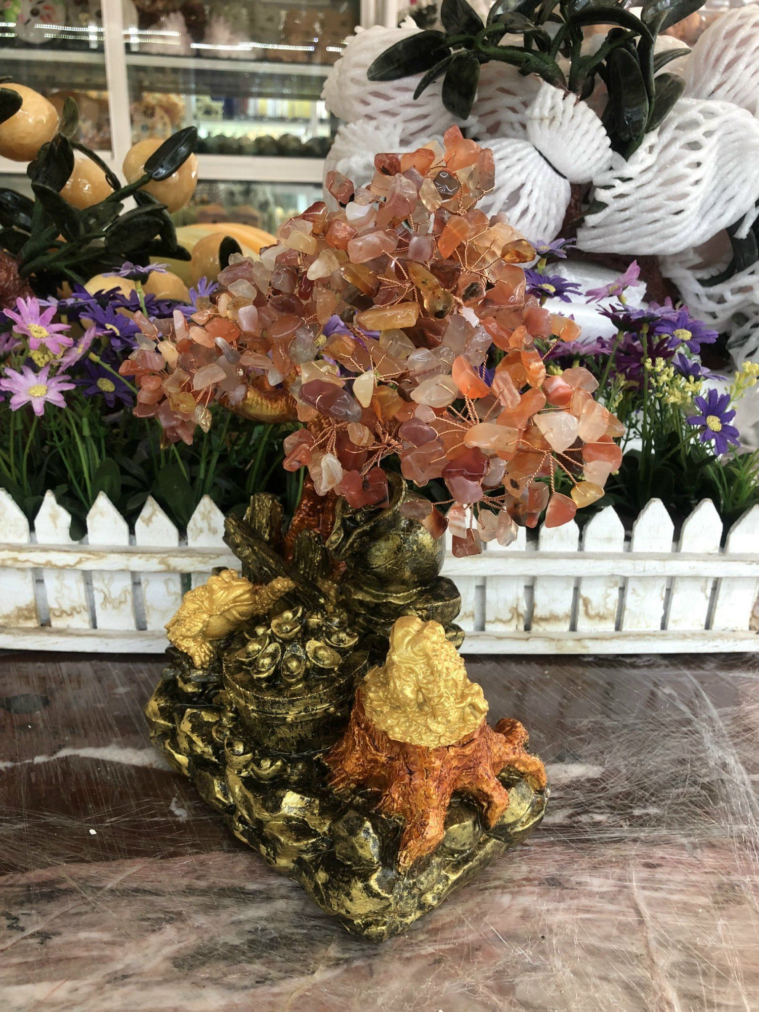 Hợp mệnh Thổ - Kim Chất liệu: Đá thạch anh vàng Kích thước: Dài 28 cm x Rộng 18 cm x Cao 40 cm Khối lượng: 3,8 kg Cây tài lộc là biểu tượng của