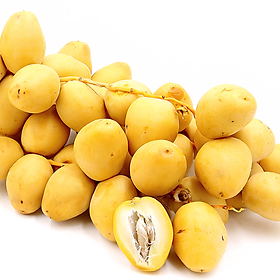Với sản phẩm tươi sống, trọng lượng thực tế có thể chênh lệch khoảng 10%. Chà Là Vàng có màu vàng tươi đẹp mắt, vị ngọt thanh xen chút chát nhẹ đặc trưng. Trái giòn