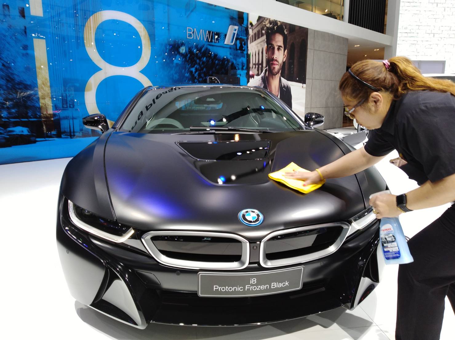- Lắc đều chai trước khi sử dụng. Phun dung dịch lên bề mặt sơn, dùng khăn sạch mềm đánh bóng đều và lau sạch phần còn sót. Nếu bề mặt chưa bóng đều, làm lại. (+) Có thể dùng trực tiếp sau khi đã dùng một khăn sạch, ướt vuốt qua bề mặt sơn (làm sạch bề mặt sơn trước khi sử dụng mà không cần phải rửa xe). (+) Lưu ý:Không dùng khi bề mặt sơn còn nóng