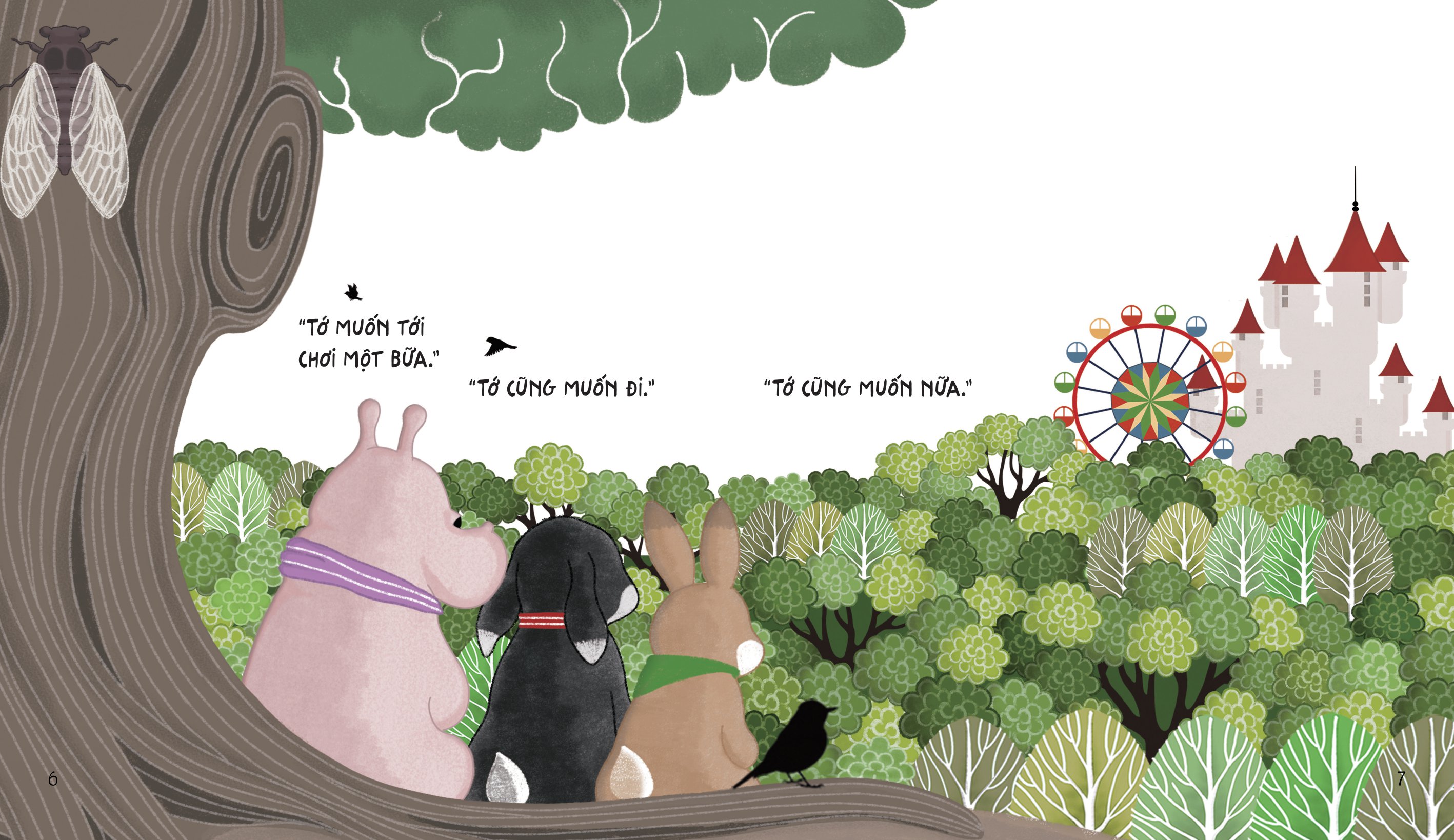 Mời bạn cùng chúng tớ đến khu vui chơi Hạnh Phúc một ngày. Bao nhiêu là trò vui, này đu quay, tàu lượn, này bập bênh, chèo thuyền… Còn niềm vui nào hơn khi được chơi cùng nhau, được chia sẻ bánh kẹo và che chung chiếc ô nhỏ. Có bạn bè cạnh bên chính là việc vui nhất trên đời!