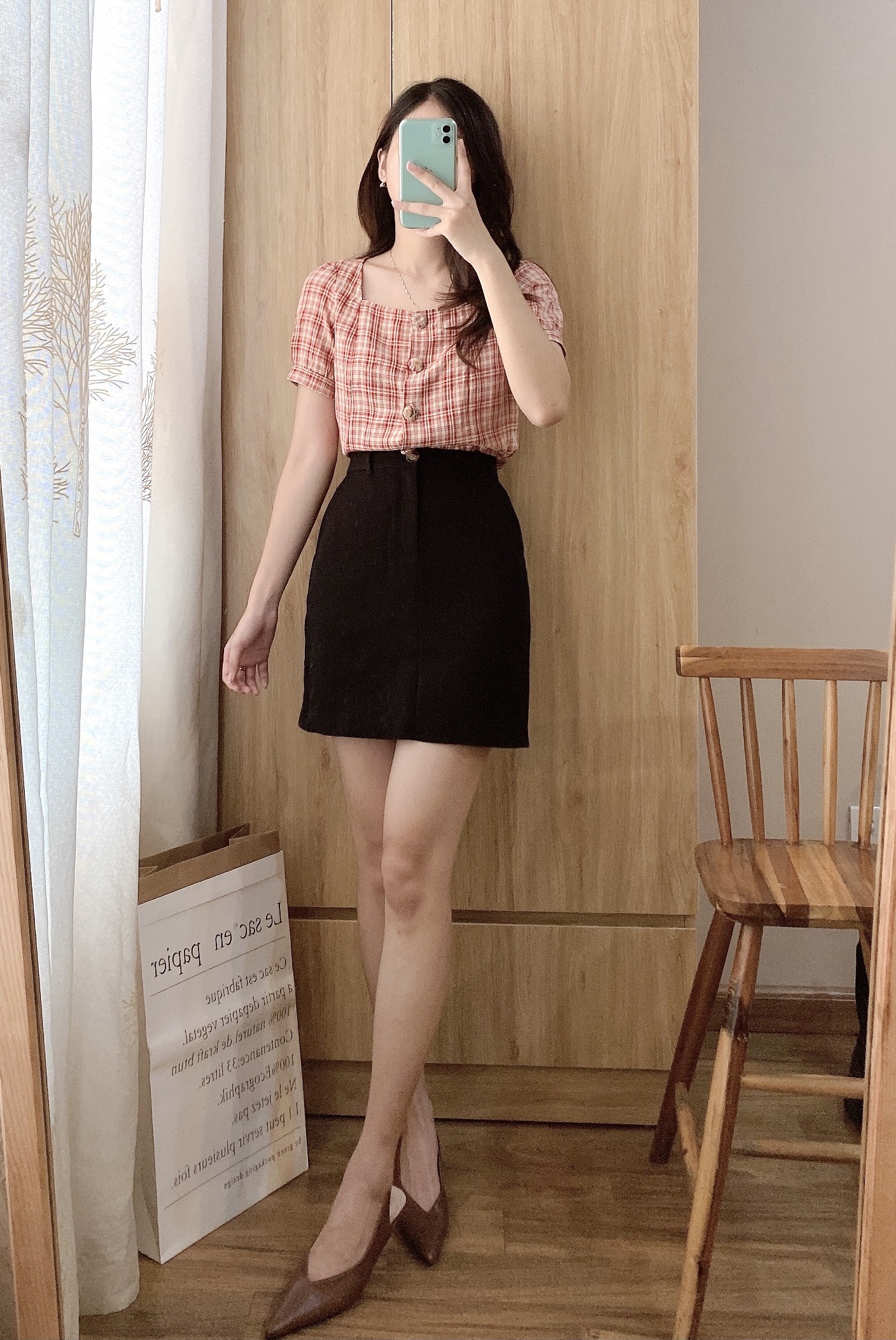 CHI TIẾT SẢN PHẨM ✿ Sản phẩm : Chân váy nữ kẻ caro dáng ngắn xòe chất vải đầy dặn Otis Miều Est.2013 ✿ Chất liệu : Kaki ✿ Màu sắc : ĐEN CARO ✿
