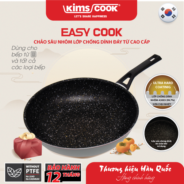 Chảo sâu KIMS COOK Easy Cook hợp kim nhôm chống dính vân đá đáy từ. MÔ TẢ SẢN PHẨM 1/ CHẤT LIỆU NHÔM HỢP KIM DÀY DẶN, KHÔNG RA TEN AN TOÀN CHO
