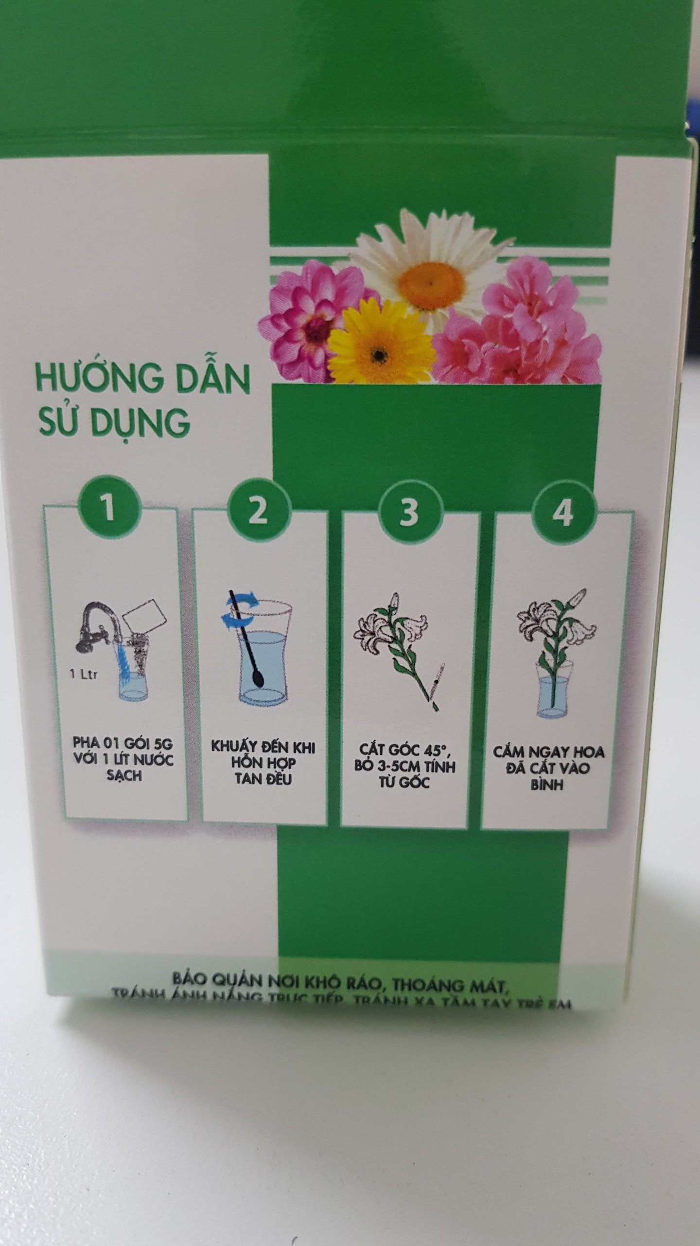 Mua tại TiktokChất dưỡng hoa 5G nhập khẩu Hà Lan. Giúp hoa tươi lâu, bông nở to đẹp, dung dịch trong không có mùi hôi. Hướng dẫn sử dụng: Hòa tan 1 gói dưỡng hoa 5G với 1L nước sử dụng cắm hoa.