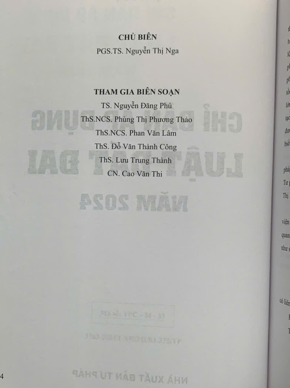 Chỉ Dẫn Áp Dụng Luật Đất Đai Năm 2024 & Kỹ Năng Giải Quyết Tranh Chấp Đất Đai Tại Tòa Án Tác giả: Luật sư Nguyễn Thị Ngọc Hà Nhà xuất bản: Lao Động Khổ