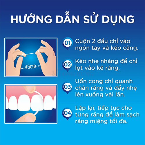 Lưu ý: Sợi chỉ phải ôm sát bề mặt răng, kéo nhẹ theo chiều trước sau, và kéo về phía mặt nhai, không sử dụng động tác kéo chỉ theo chiều ngoài trong với biên độ lớn