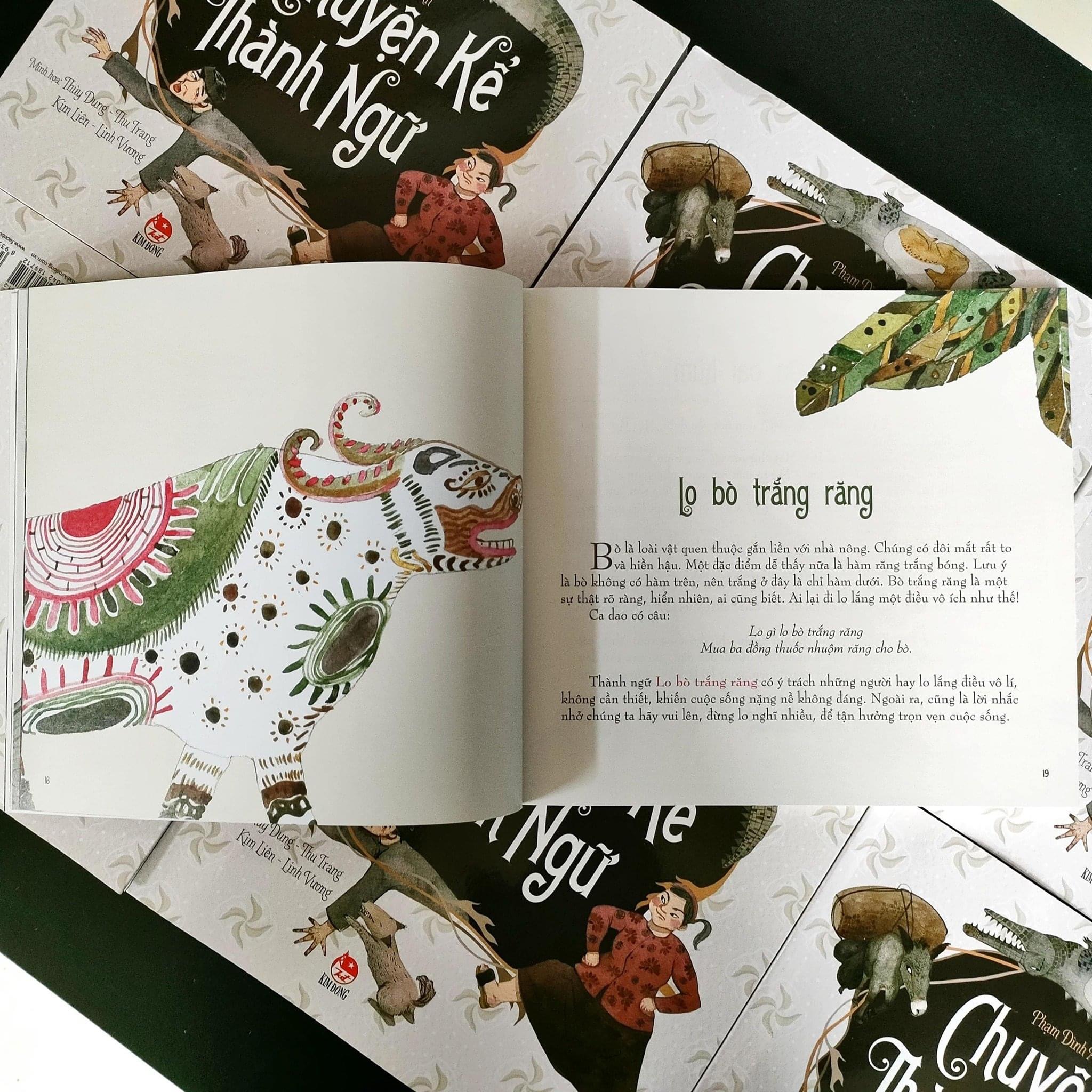 Mua tại TiktokCái thú vị ở cuốn sách này là cách tiếp cận thành ngữ thật thật là gần với trẻ em. Gì chứ cứ hình ảnh là vào lòng nhất. Thay vì ngồi cắt nghĩa rồi google mỏi mắt để trả lời các câu hỏi bất tận của các bạn, thôi mời các bạn giở sách nhé! Bố mẹ cũng nên đọc,vì nhiều cái nói vậy mà không hiểu đâu, thậm chí sai ấy. CHUYỆN KỂ THÀNH NGỮ 130 câu chuyện kể về các thành ngữ hay gặp trong cuộc sống. Cách kể lại thông qua các câu chuyện giúp các bé dễ dàng tiếp nhận và hiểu hơn về các thành ngữ này.